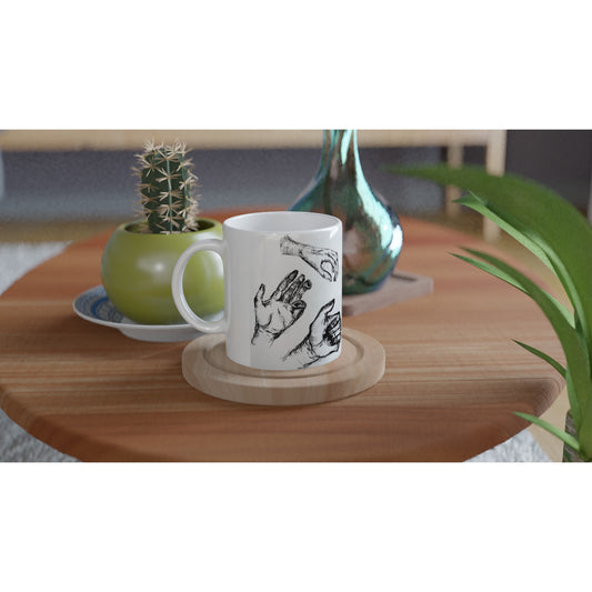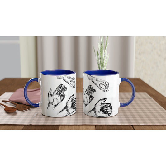 Hand Study - White 11oz Ceramic Mug with Color Inside