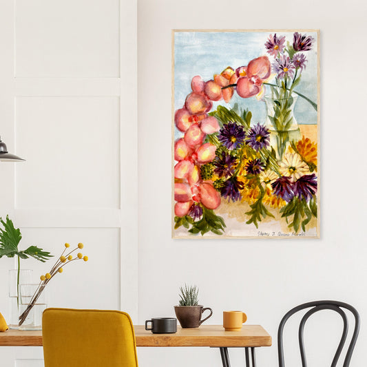 Orquídeas - Watercolor Museum-Quality Matte Paper Wooden Framed Poster