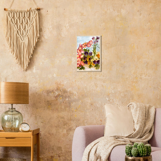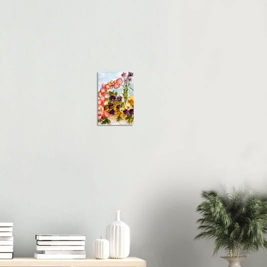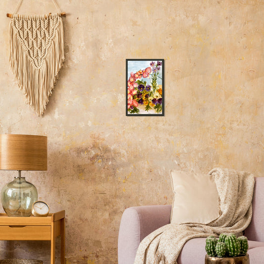 "Orquídeas" is a vibrant watercolor painting that celebrates the diversity and beauty of flowers, with a particular focus on orchids. Created with a wide range of colors, the artwork bursts with life and energy. The organic texture of the watercolor medium enhances the natural feel of the composition, while the meticulous arrangement of various flowers ensures a strong and harmonious design. Orchids, with their distinct and elegant forms, are the most noticeable, drawing the viewer's eye and anchoring the piece with their striking presence. "Orquídeas" is a vivid tribute to nature's splendor and the delicate allure of floral beauty.
