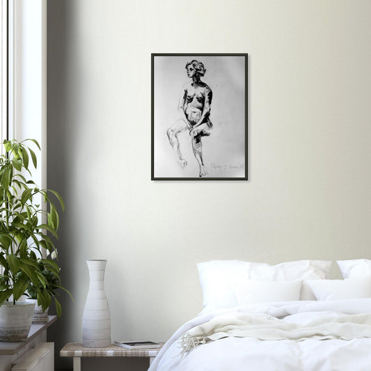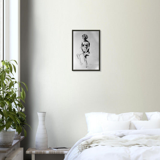 She. - Charcoal Museum-Quality Matte Paper Wooden Framed Poster
